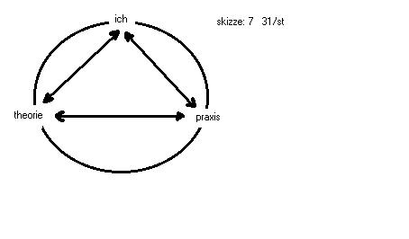 Diesen sachverhalt kennzeichne Ich mit der formel, die die grundrelation des ich zu den dingen seiner welt fixiert: ich-->das_andere. Das ich kann sich seines selbst nur darin bewusst sein, dass es einem anderen ding seiner welt gegenübersteht, das es darauf begrenzt, was es ist. Jedes ding der welt des ich ist dem ich das_andere, und was das ich als ich ist, erscheint dem ich als ein moment, das allein in dem situiert ist, das der begriff: das_ andere, definiert. Streiche Ich also das_andere in der relation durch, dann ist das ich gegenstandslos, und es kann sich selbst nicht als ein ich erfahren. Was das ich dann noch sein könnte ist gegenstand wüstester spekulationen; daran beteilige Ich mich nicht....