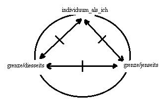 Zusatz: alle relationen sind diesseits der grenze verortet, auch dann, wenn die intention des individuums als ich dem gilt, was jenseits der grenze sein soll.---