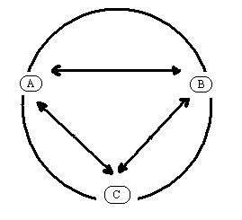 die 4.relation: C<==|==>(A<==>B),(in der klammer).