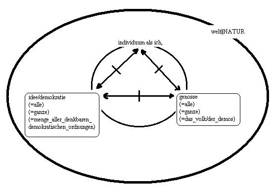 Zusatz. Es sind zwei schemata, die nicht identisch fallen können. Die daraus resultierende komplexität der beiden schemata, vermittelt durch die relation: individuum_als_ich<==>genosse, wird hier nicht dargestellt, sie ist aber konstruierbar, wenn die graphik: 75e, herangezogen wird(01).