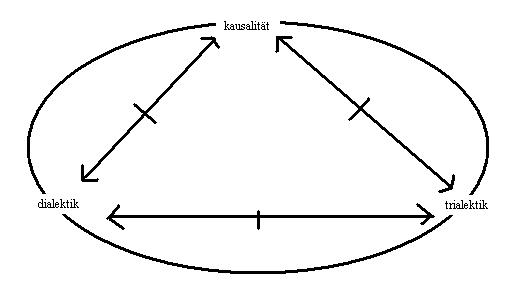 3.rel.: kausalität<==|==>dialektik.Wenn die schemata: 1 und 2, in einer graphik zusammengeführt werden, dann fasst die graphik: 076c, fünf schemata im trialektischen modus zusammen, die nicht identisch fallen können(c).