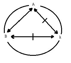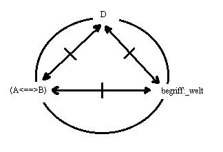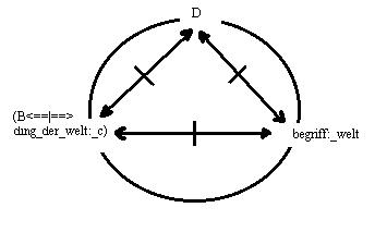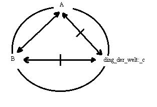 wiederholung des gedankens in einer graphik. Die relation: A<==>B, hat in der funktion der relation_1 die form: A<==|==>k'<==|==>B,* deren ausgeschlossenes drittes moment das ding der welt: k, ist, das A und B in differenten relationen als relation_2 vefügbar haben.