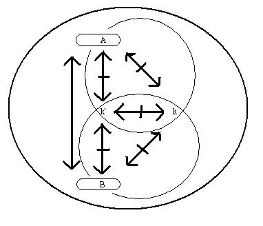 *** die beiden kleineren kreise markieren die teilrelationen: A<==|==>k' und k'<==|==>B.