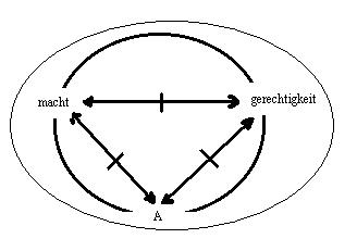 die konstituierenden momente: "A, B und (#macht<==|==>gerechtigkeit#);