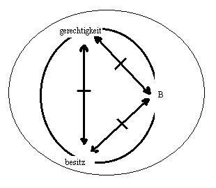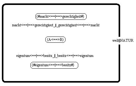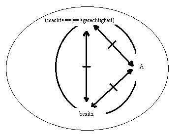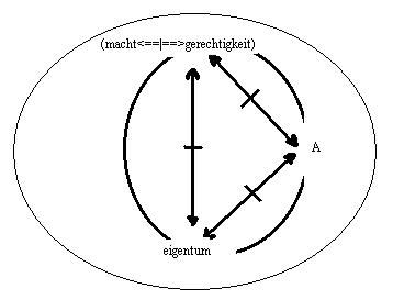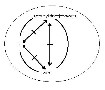 die konstituierenden momente sind: (A<==>B), (#macht<==|==>gerechtigkeit#)(+1) und (#eigentum<==|==>besitz#)(+2);