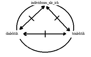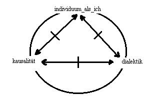 Ich unterscheide drei methoden: "die kausalität, die dialektik und die trialektik",(02). Im trialektischen modus verknüpft, erscheint das individuum als ich nicht als moment, obgleich jede methode für sich erst durch das individuum als ich ihren spezifischen sinn erhält(03). Ich beschränke mich darauf, den gedanken in seiner graphischen darstellung zu präsentieren.