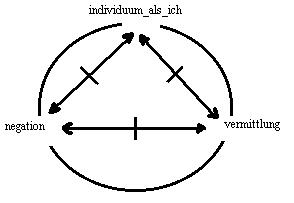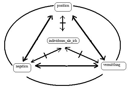 Weil das individuum als ich es ist, das in relationen die momente: "position, negation und vermittlung" fasst, sind drei schemata definiert, die strikt getrennt gehalten werden müssen, gleichwohl sie im individuum als ich das vermittelnde moment haben.