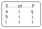 die versuchung ist grooss, das argument, das in seinen momenten nicht identisch sein kann, in einer tautologie verschwinden zu lassen(01). Der prozess des verschwindens ist demonstrierbar. Der ausgangspunkt ist das logische urteil: SaP. Wenn für S die buchstaben: a aufsteigend bis i, eingesetzt werden und für P die buchstaben: q absteigend bis i(02), dann ergibt sich, wenn die kopula: ist, mit dem buchstaben: i, markiert wird, das folgende schema:(t)