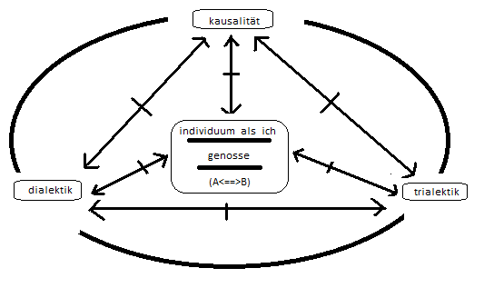 schema des trialektischen modus: kausalität<==|==>dialektik,