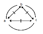 die extrempunkte der linie: a und c, mit dem punkt: b, als vermittlung dazwischen, können als dreieck dargestellt werden,