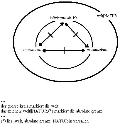 graphik: der begriff: grenze,(intramundum/extramundum).(10) lies: das individuum als ich relationiert wechselseitig den genossen. (10)<==//