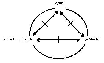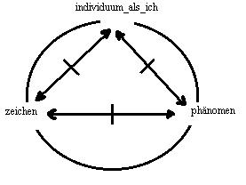 an den funktionsstellen: "begriff, phänomen und zeichen", kann das ding der welt: individuum als ich, eingesetzt werden. Dann ergeben sich die folgenden schemata:Schema(1)