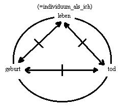 Für Hegel's begriffstrias: "geburt, leben(=individuum als ich), tod" sind nach der einsetzungsregel die folgenden relationen formuliert:
