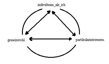 Das individuum als ich, das gemeinwohl, die partikularinteressen.